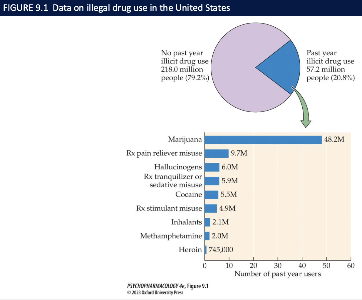 _____ important bc early use is dominated by _____ → the drug ___ the probability of ___ bc it feels good/strongly wanted