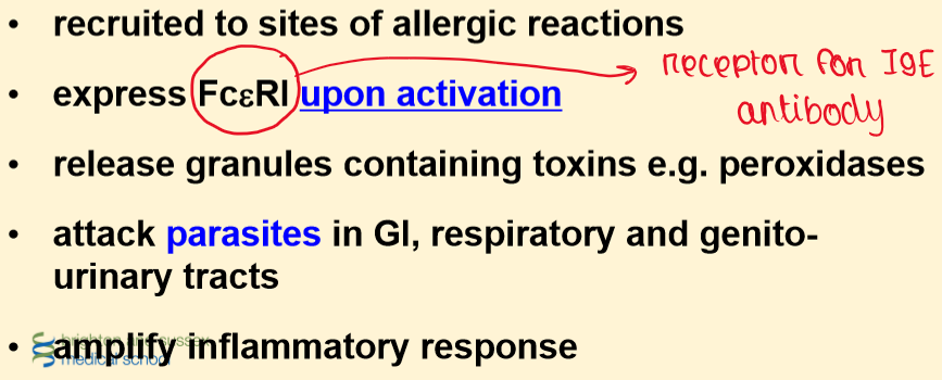 1) recruited to sites of allergic reactions or ectoparasite infection