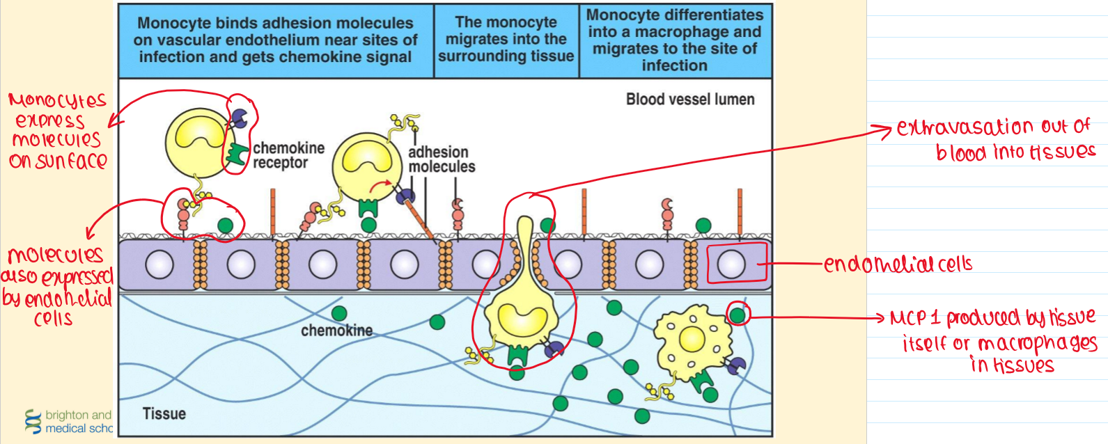 2) Chemotaxis of leucocytes from blood towards endothelium