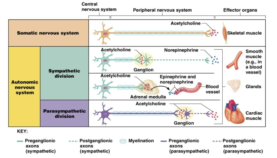 Preganglionic neurons are in the brainstem or lateral horn of the spinal cord