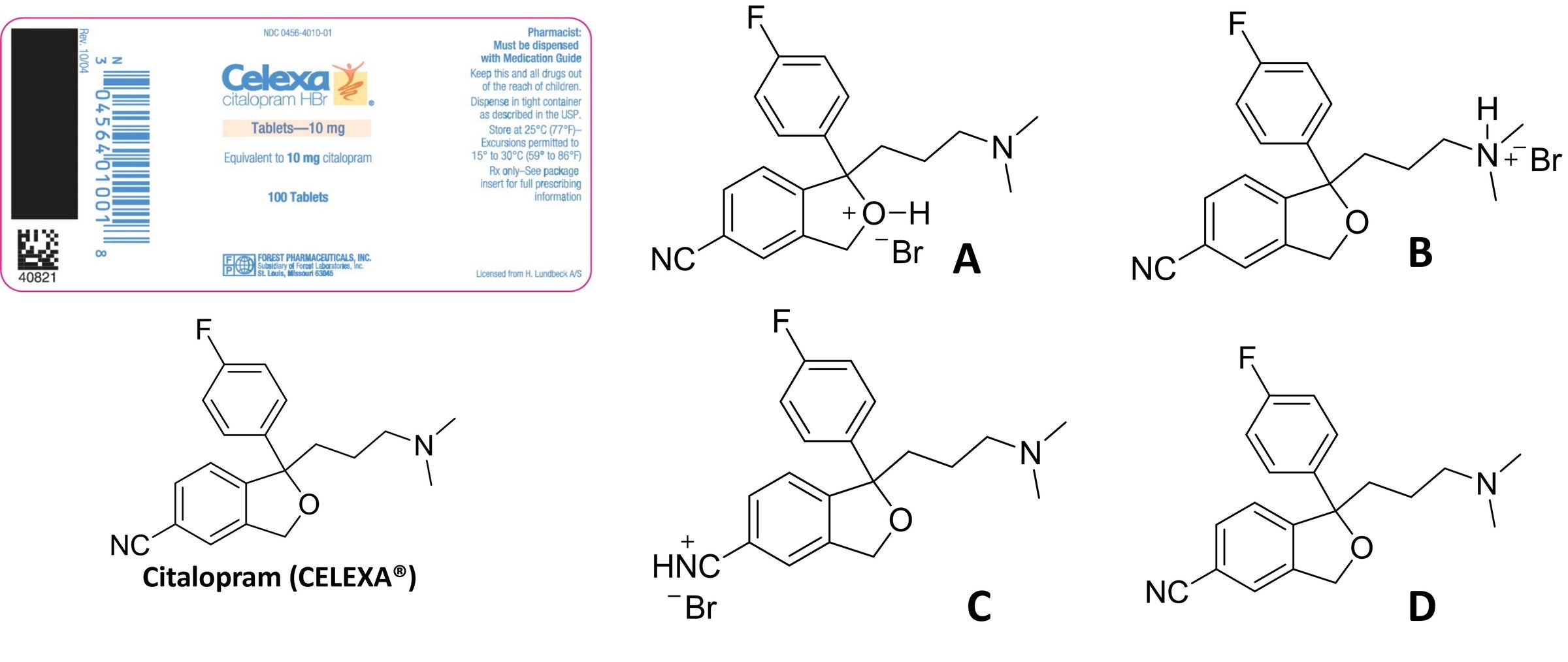 Citalopram is formulated as the HBr salt. Which is the correct, formulated structure?