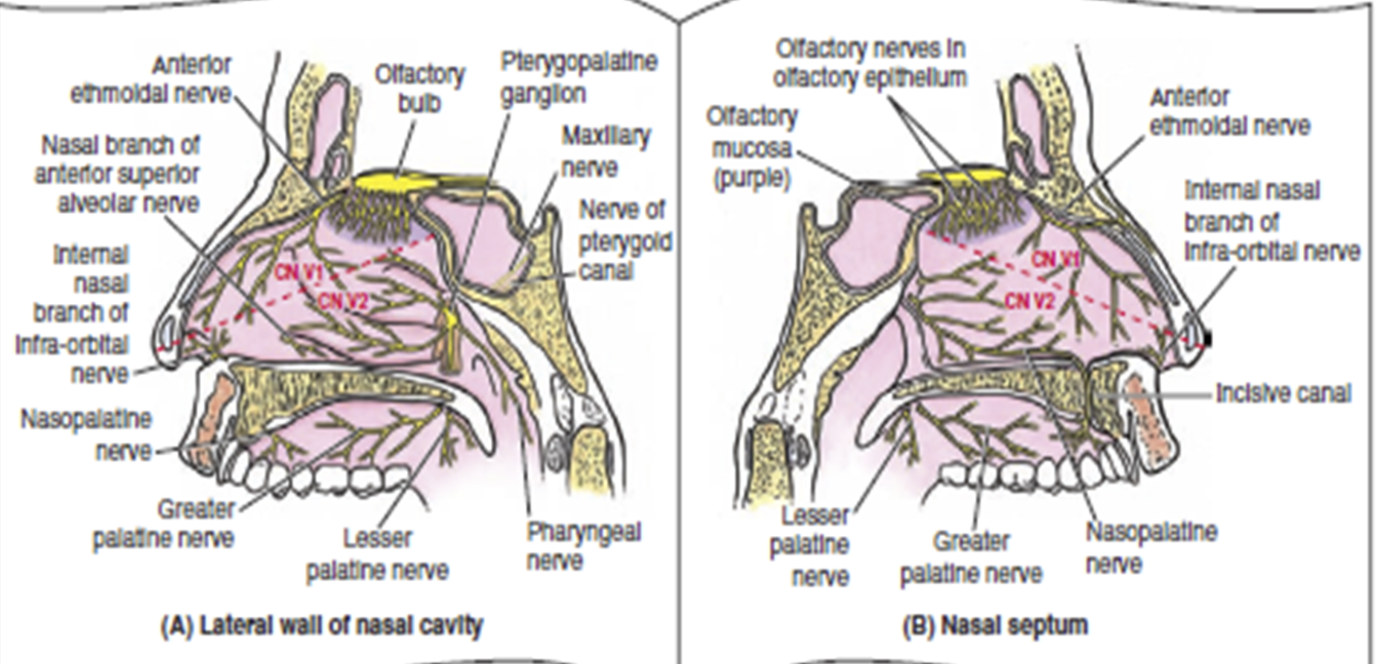 The external nose is mostly innervated by which 2 nerves?