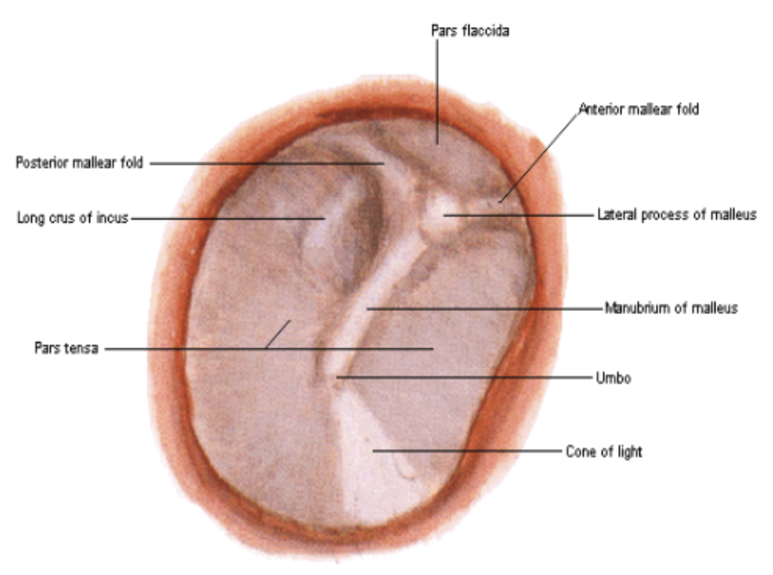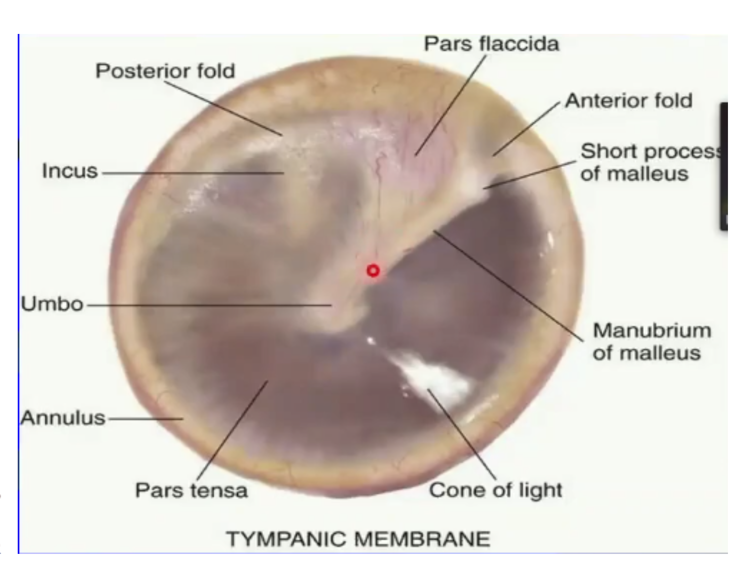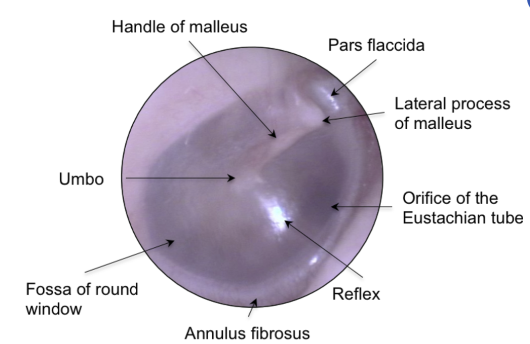 anterior and posterior malleolar folds = separates pars flaccida and pars tensa