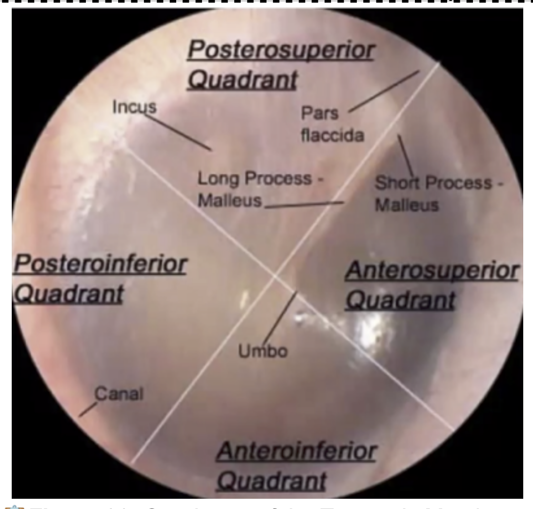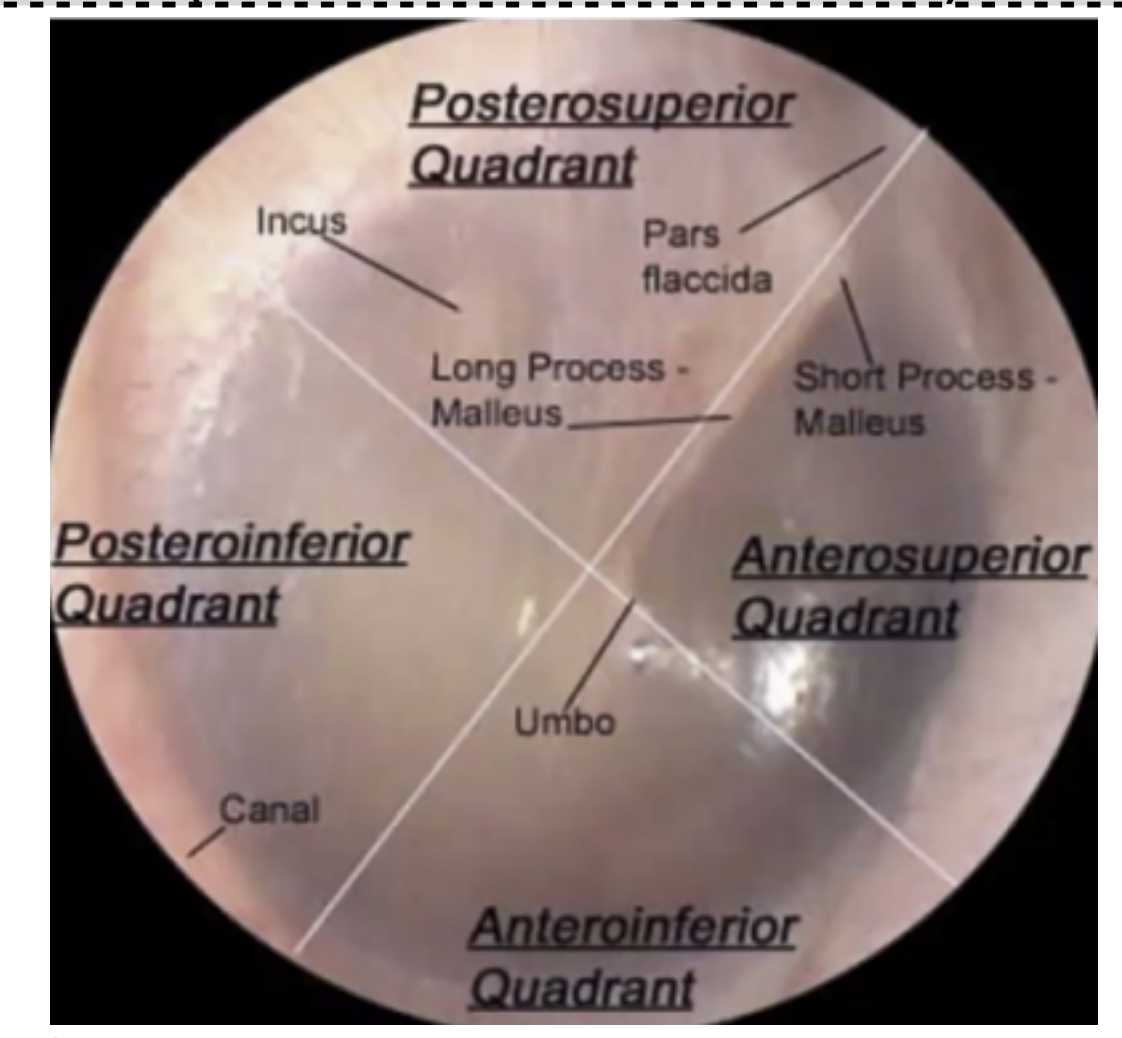 You CANNOT incise at the (?) or (?) quadrant to avoid damaging the Ossicles and Chorda Tympani.