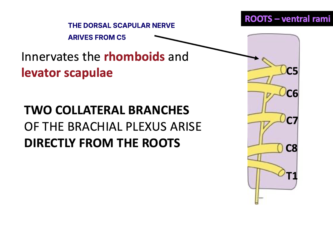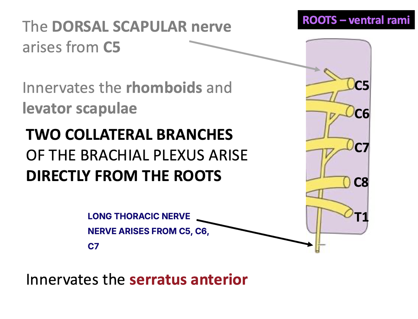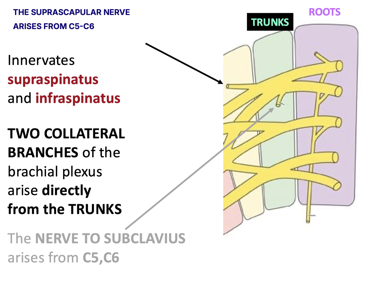 The nerve to subclavius (C5-C6) and the suprascapular nerve (C5-C6).