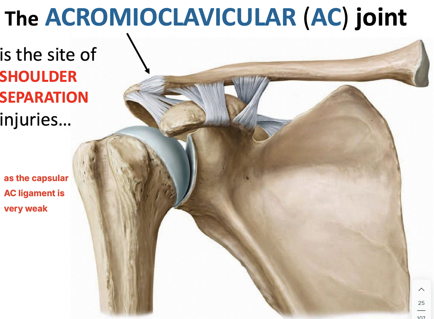 What is joint at which shoulder separation injuries often ocur? Why is this so?