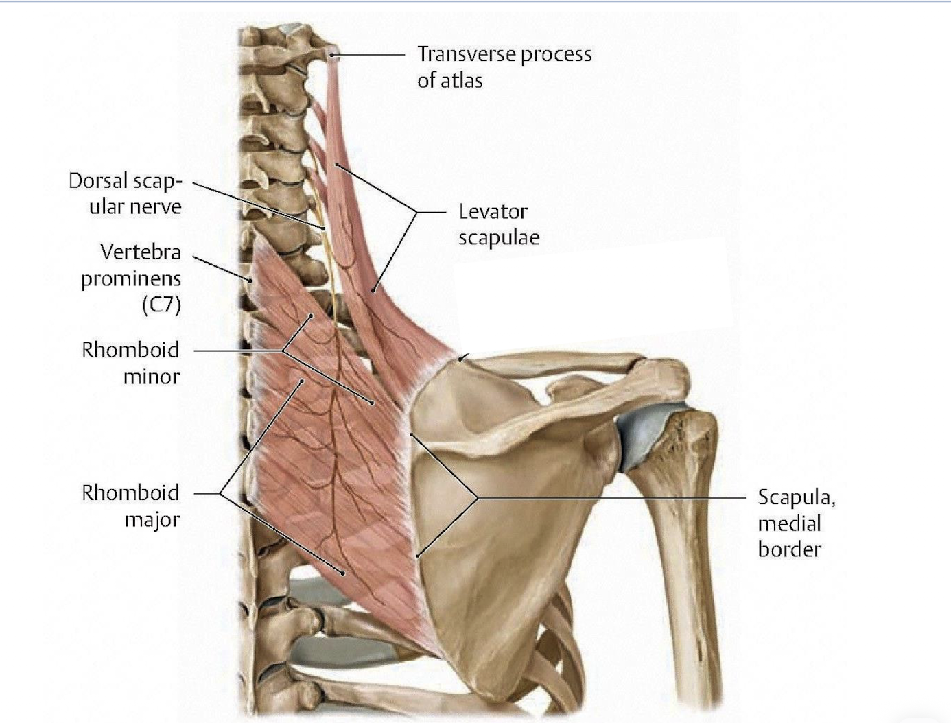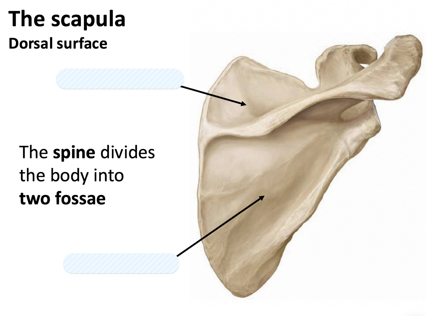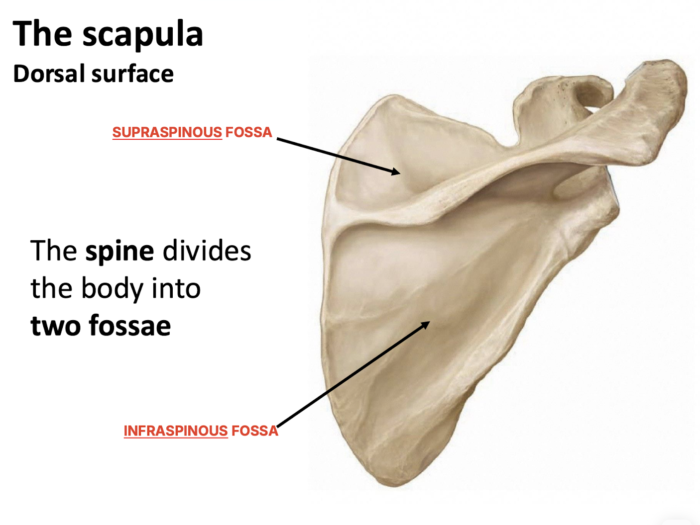 The scapular spine, acromion process, and coracoid process are all palpable.