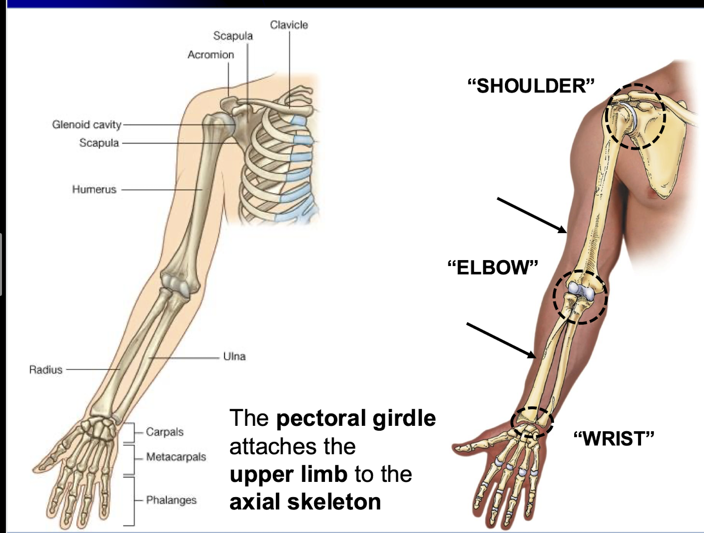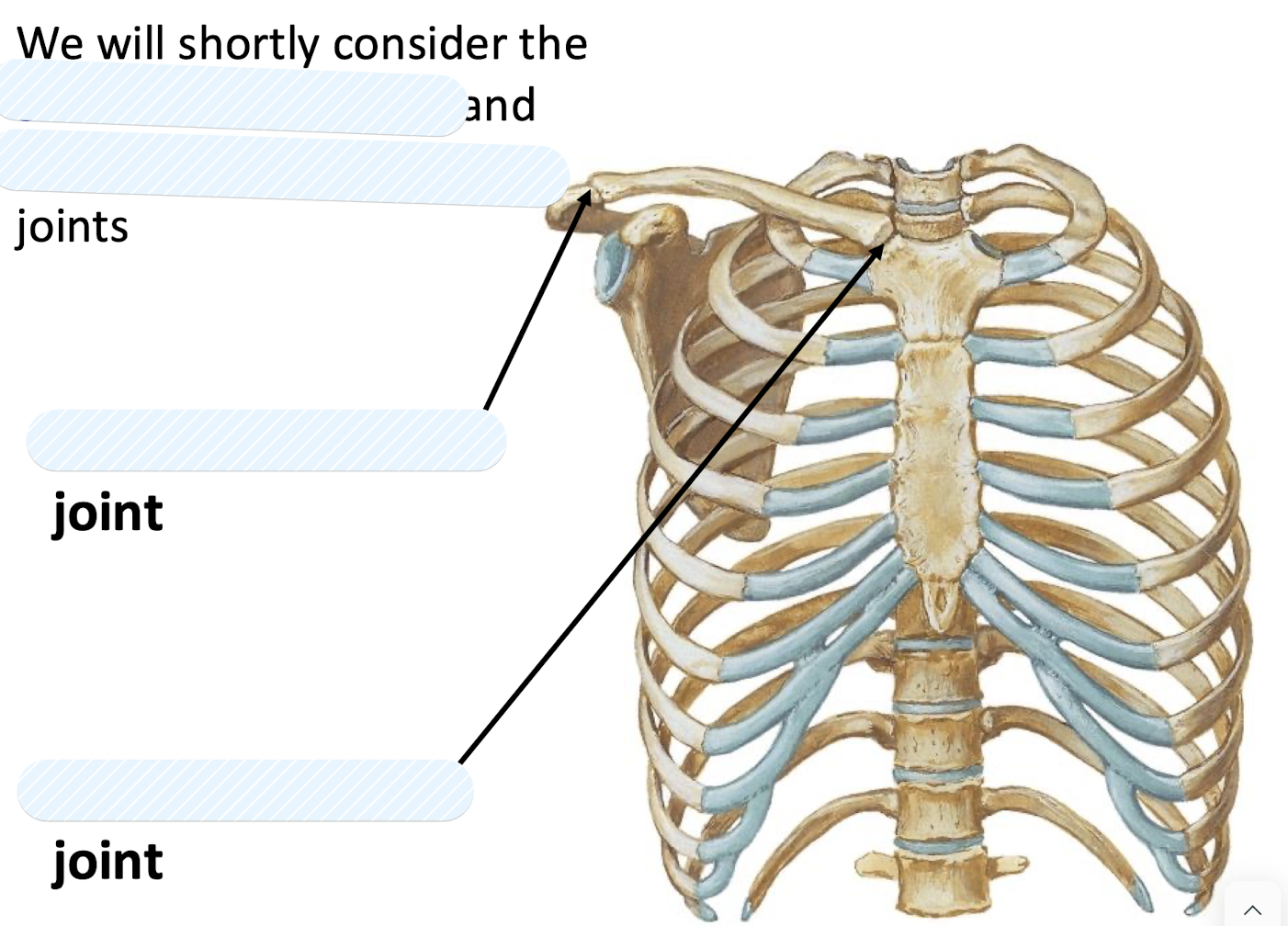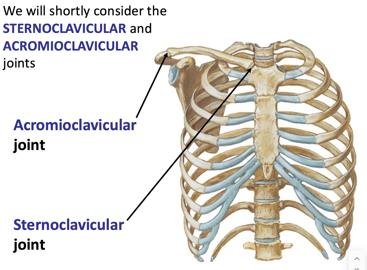 The sternoclavicular (SC) joint, acromioclavicular (AC) joint, glenohumeral joint, and scapulothoracic "joint".