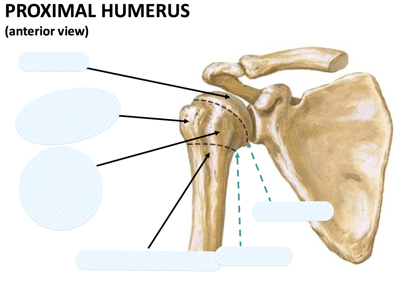 Identify the landmarks on the proximal humerus visible in an anterior view.