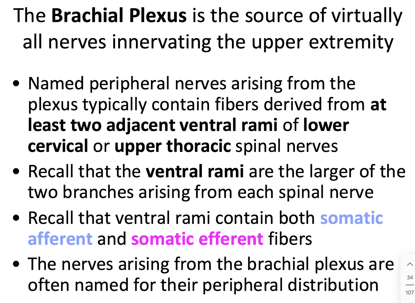 At least two adjacent ventral rami of lower cervical or upper thoracic spinal nerves