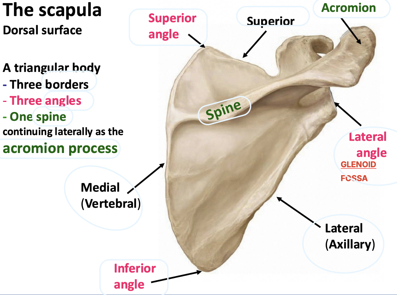 Borders: medial (vertebral), lateral (axillary), and superior; Angles: superior, lateral, and inferior.