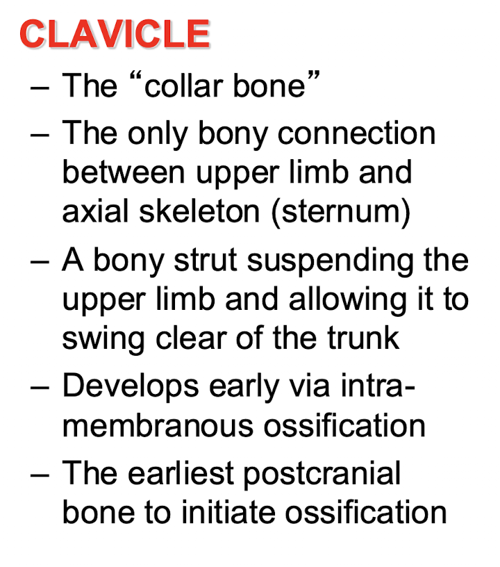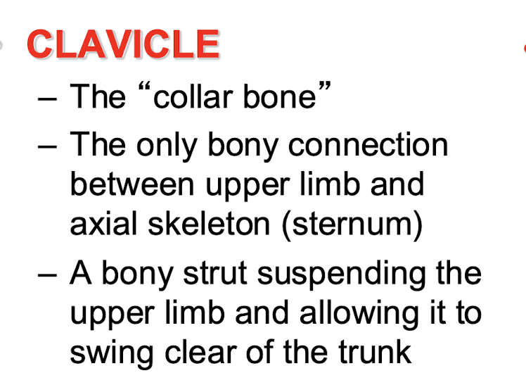 Which bone provides the only direct bony connection between the upper limb and the axial skeleton?