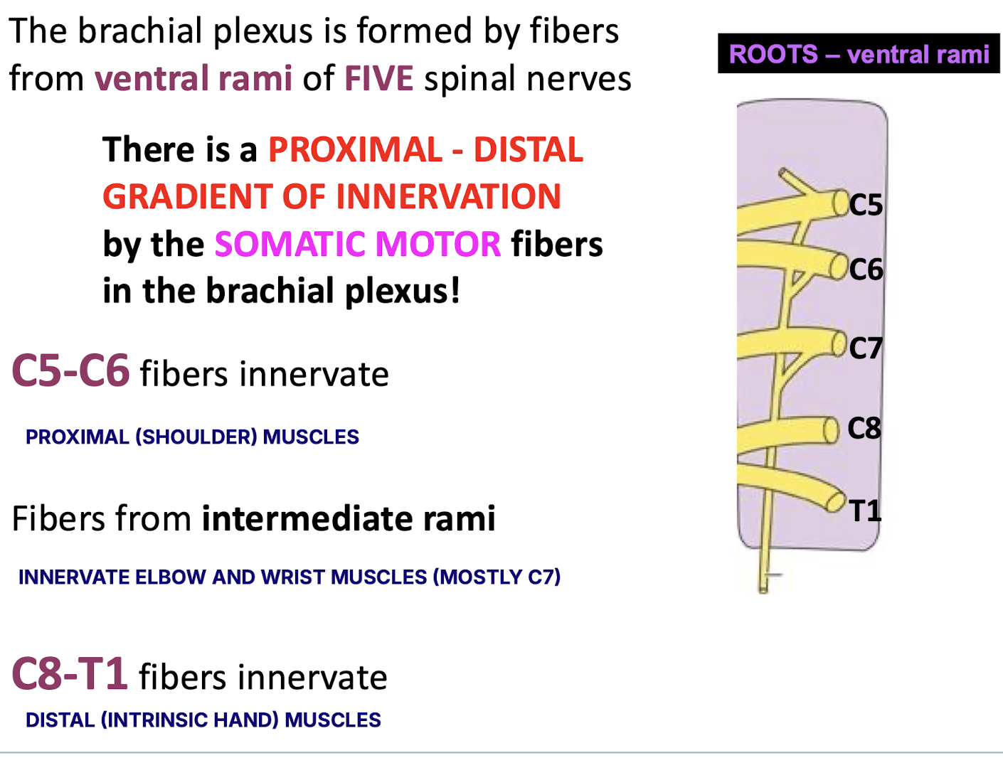 Superior (C5-C6), Middle (C7), and Inferior (C8-T1).