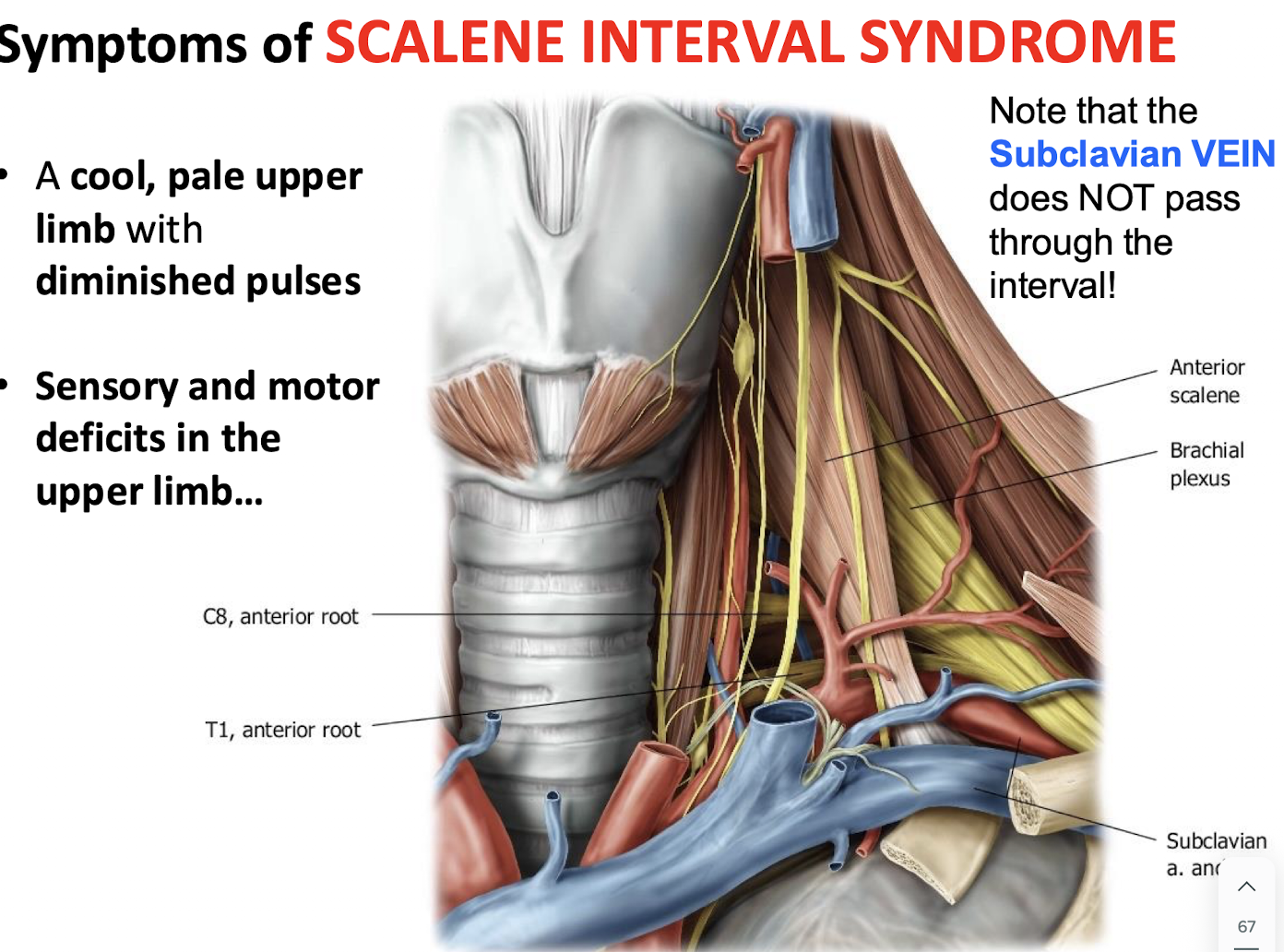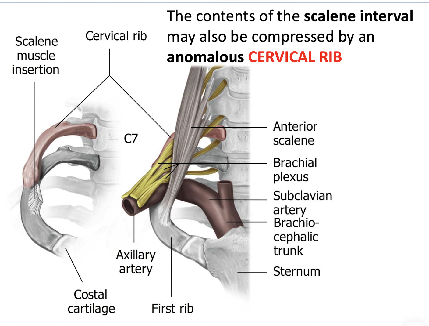 The contents of the scalene interval may also be compressed by an anomalous CERVICAL RIB