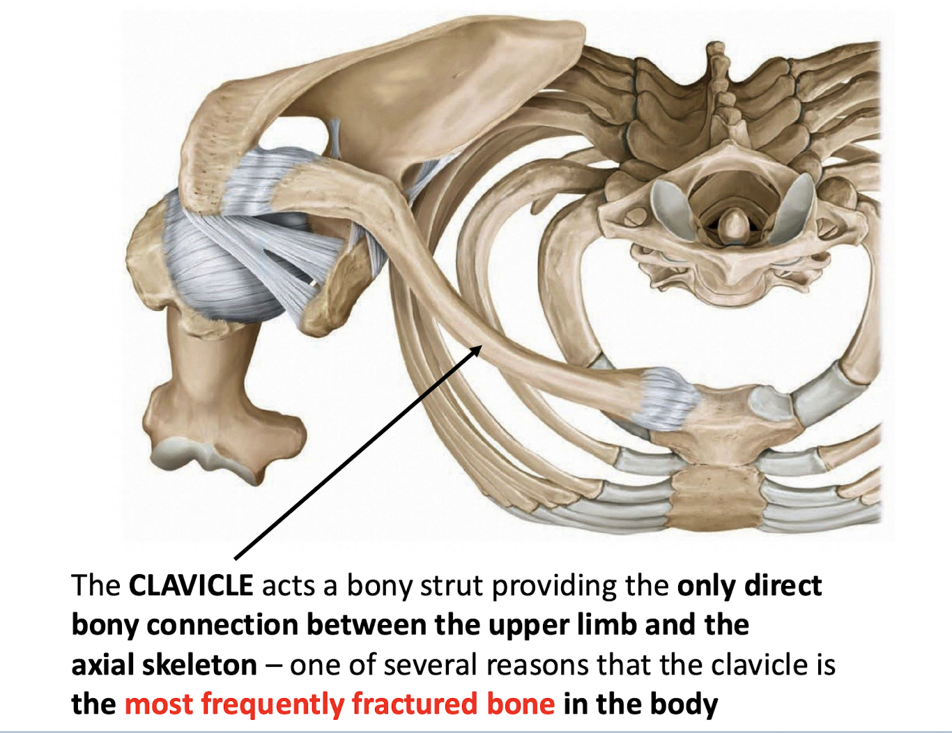 It acts as a bony strut suspending the upper limb to allow it to swing clear of the trunk.