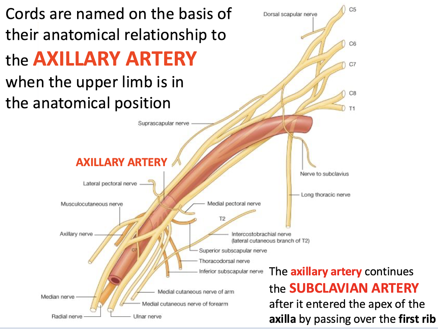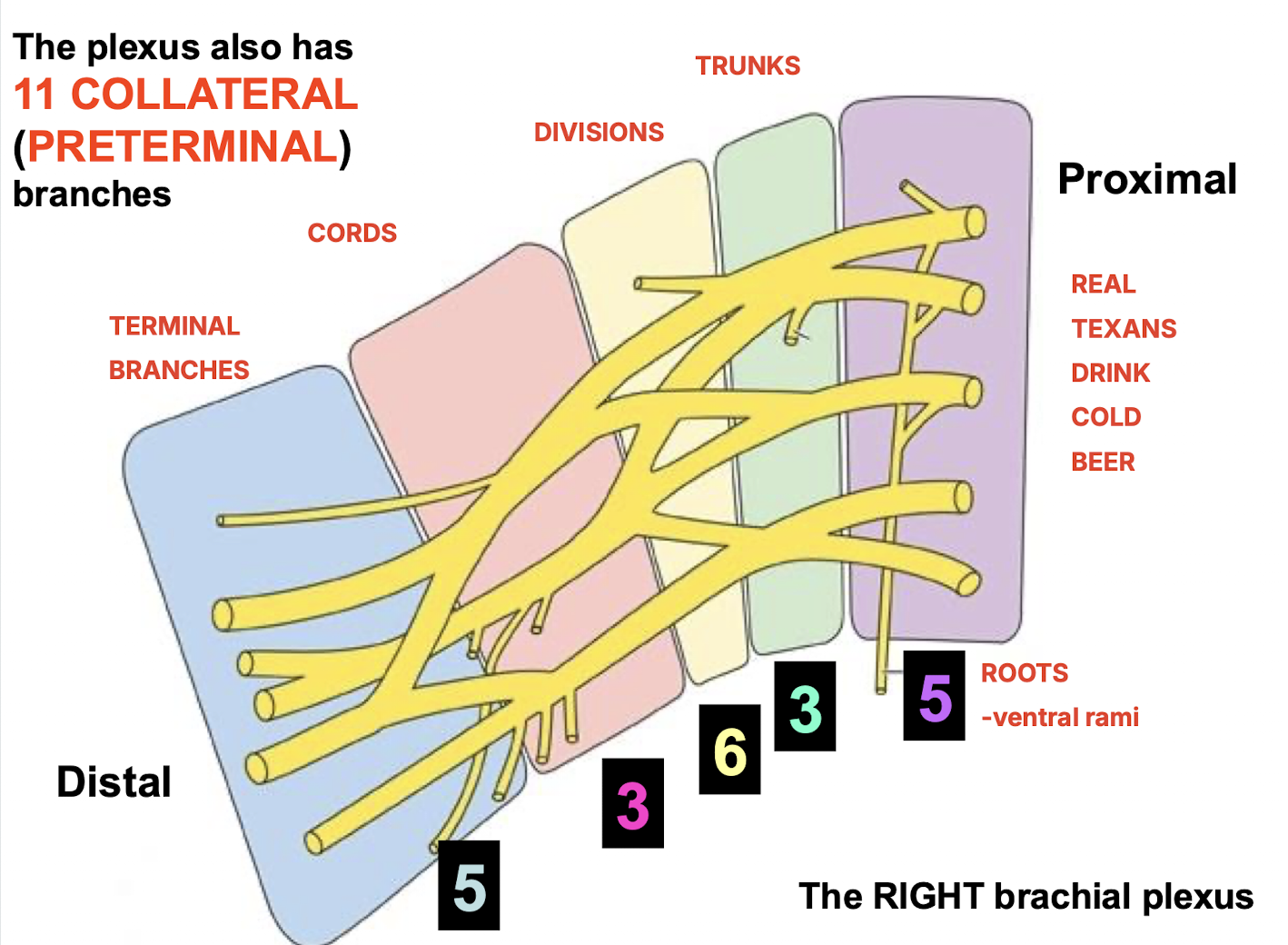 Each cord gives rise to a variable number of collateral (preterminal) nerves.