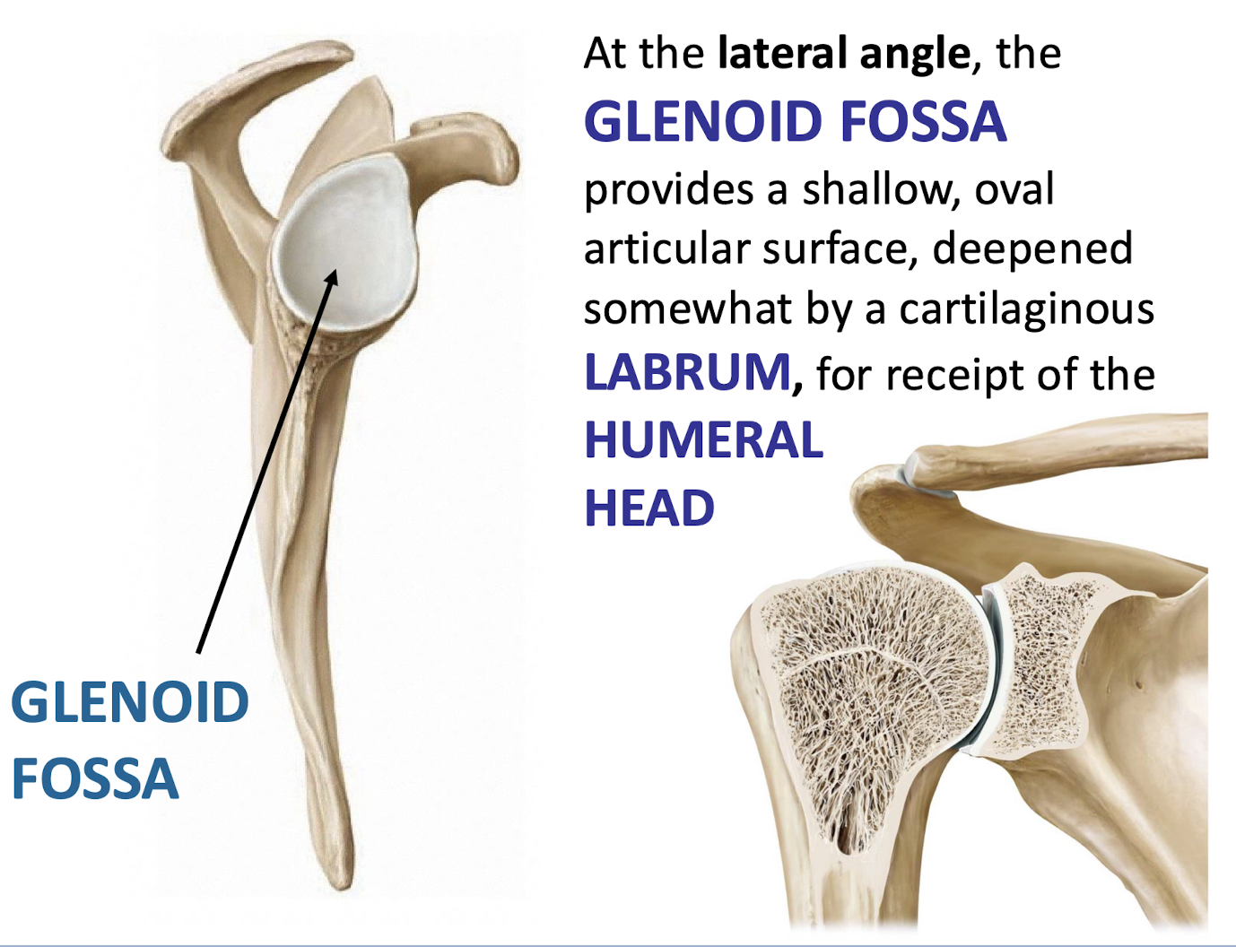 What structure deepens the shallow, oval articular surface of the glenoid fossa?