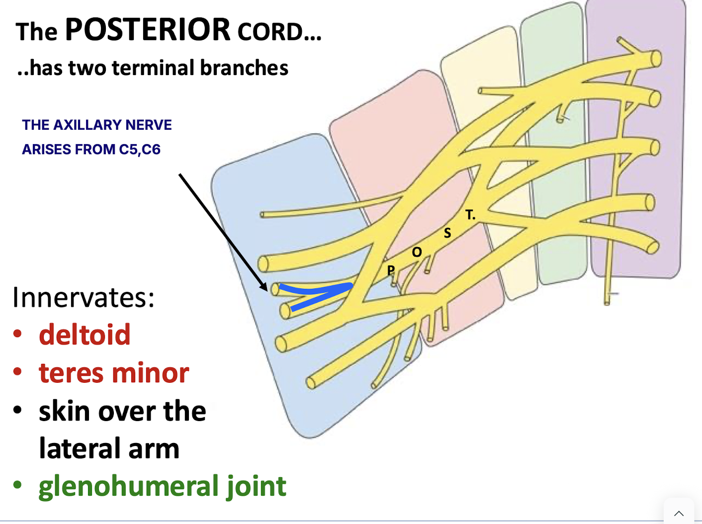 The axillary nerve (C5,C6) and the radial nerve. (C5-T1)