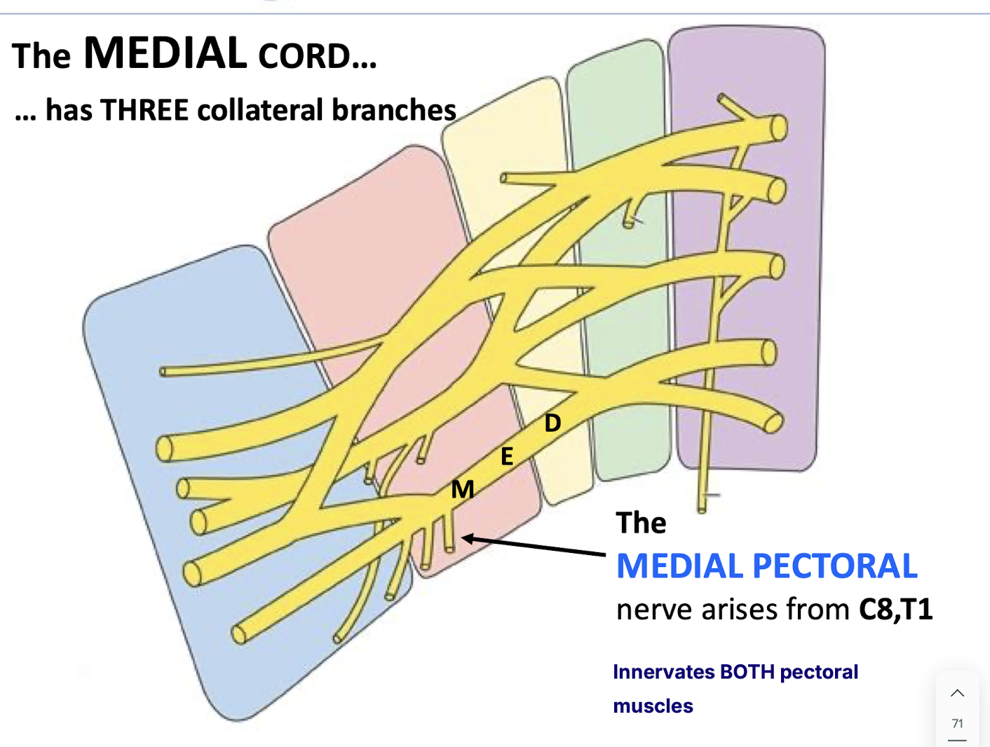 Medial Pectoral Nerve (C8–T1) – innervates both pectoral muscles.
