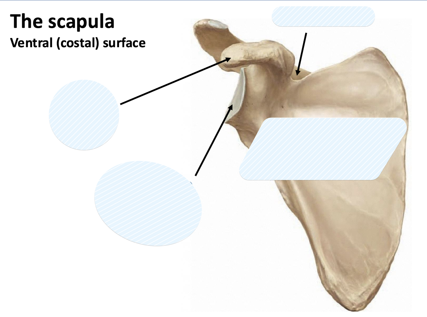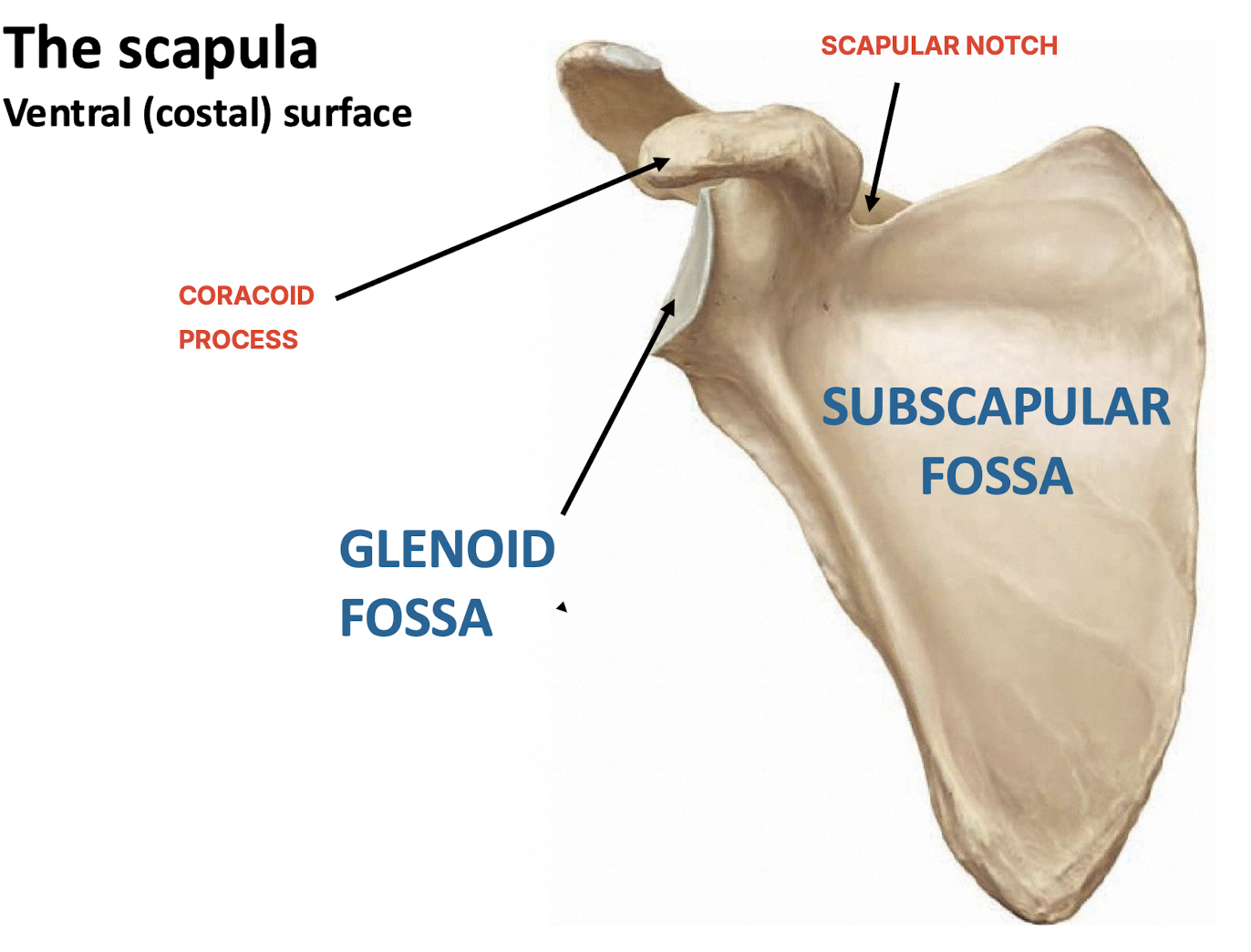 What is the name of the fossa on the ventral (costal) surface of the scapula?