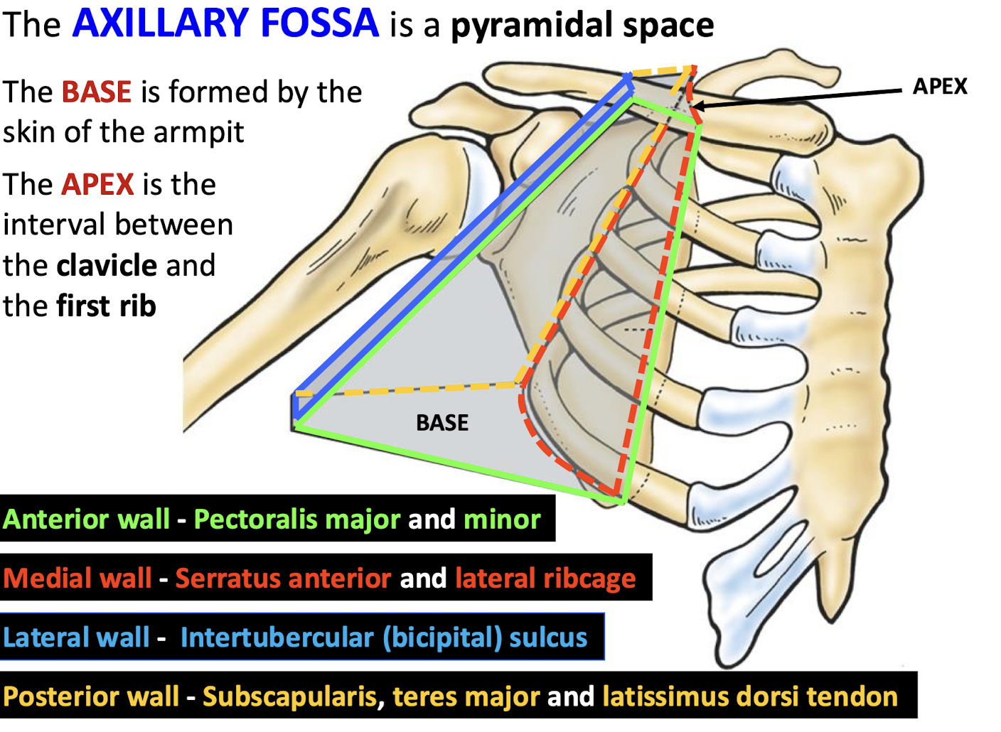 Which walls (anterior, medial, lateral, psterior) form the pyramidal axillary fossa?