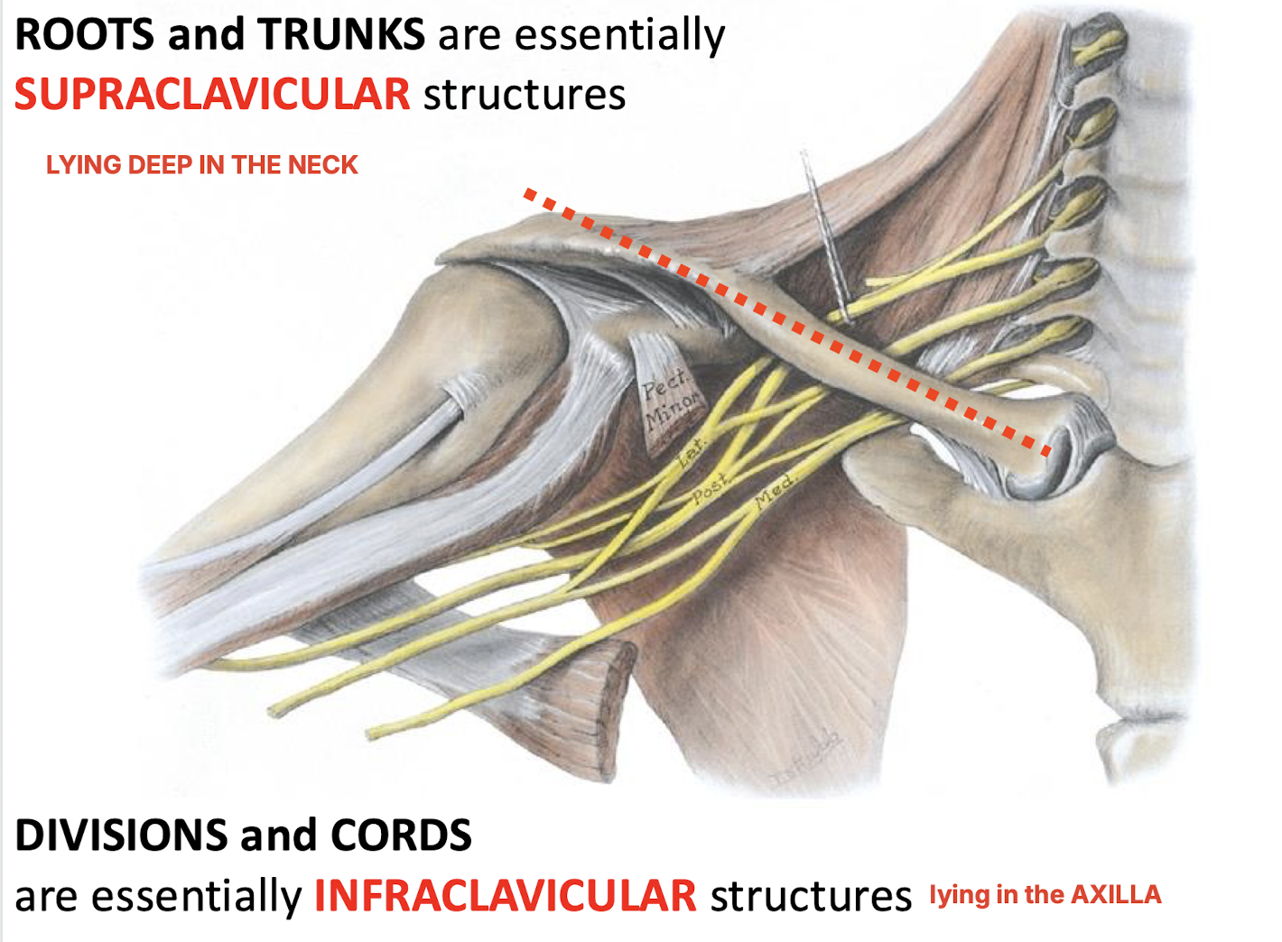 DIVISIONS and CORDS are essentially INFRACLAVICULAR structures lying in the AXILLA