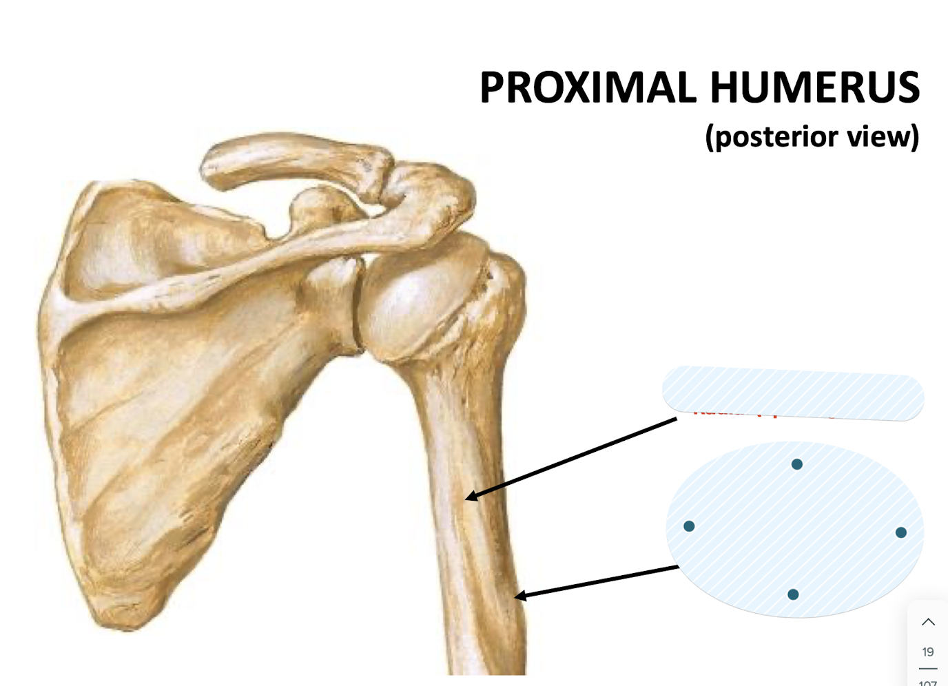 Which landmark on the humerus is found on the lateral aspect of the shaft in a posterior view?