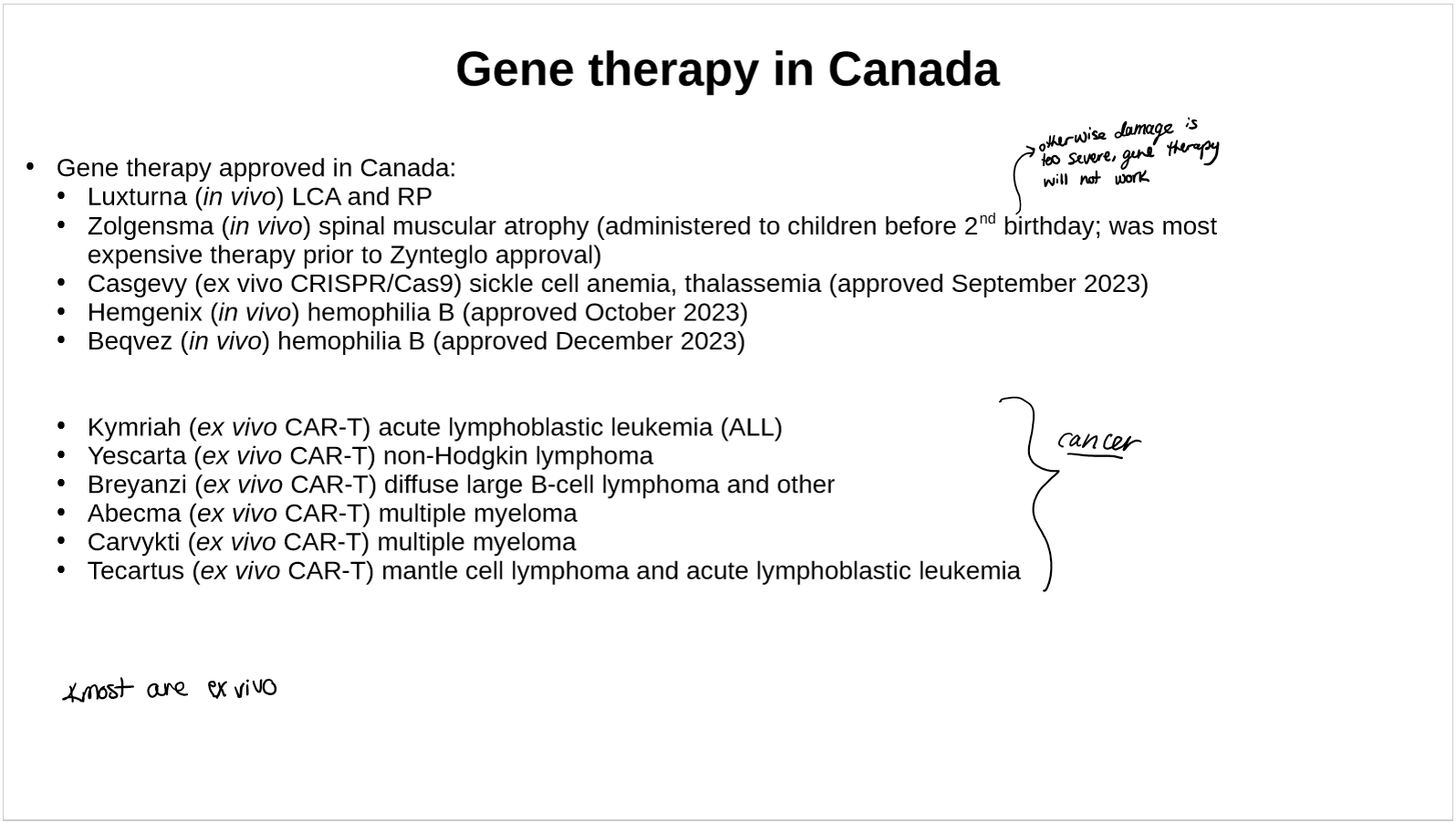 from occurring in the next generation because it does not affect the germline. Many clinical trials and approved somatic cell gene therapy products