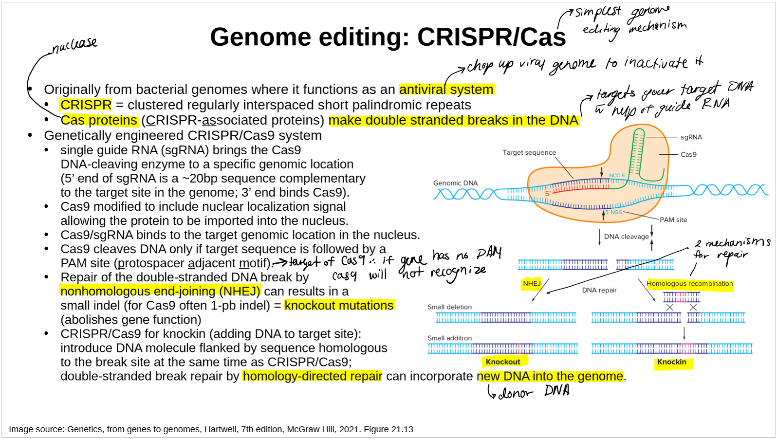 CRISPR/Cas9: RNA guide recognizes the target DNA and brings the nuclease