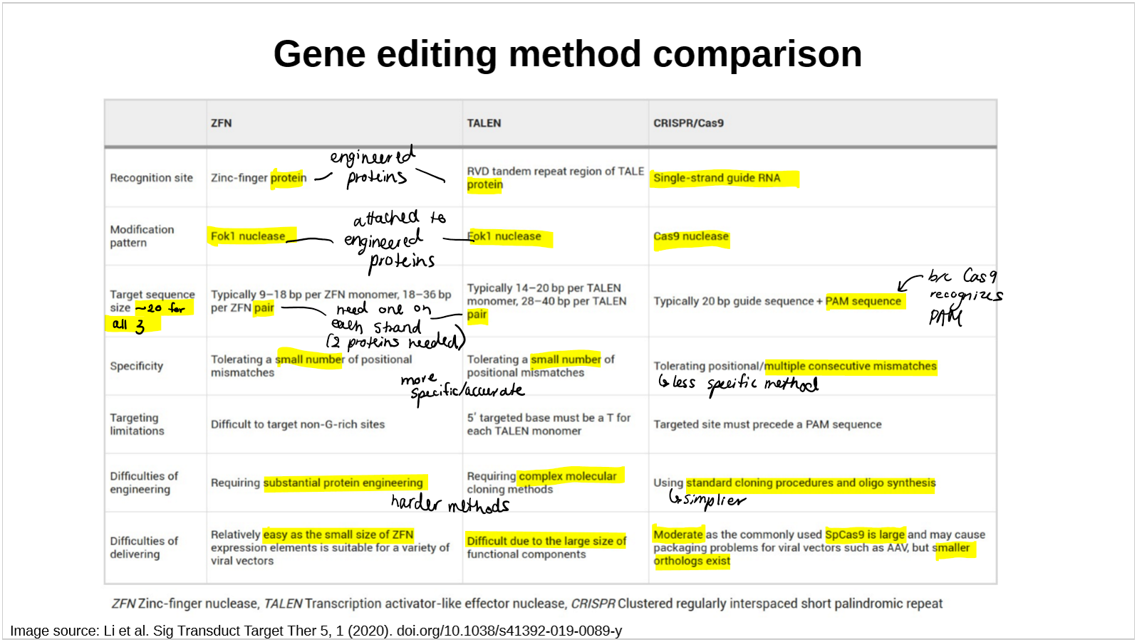 ZFN and TALEN: protein-DNA system whereas CRISPR/Cas: RNA-DNA system