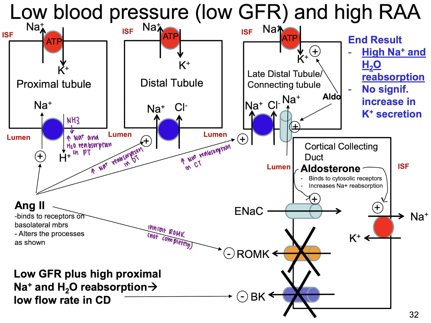 explain what happens when low MAP (low GFR) and high RAA (but K+ is normal)