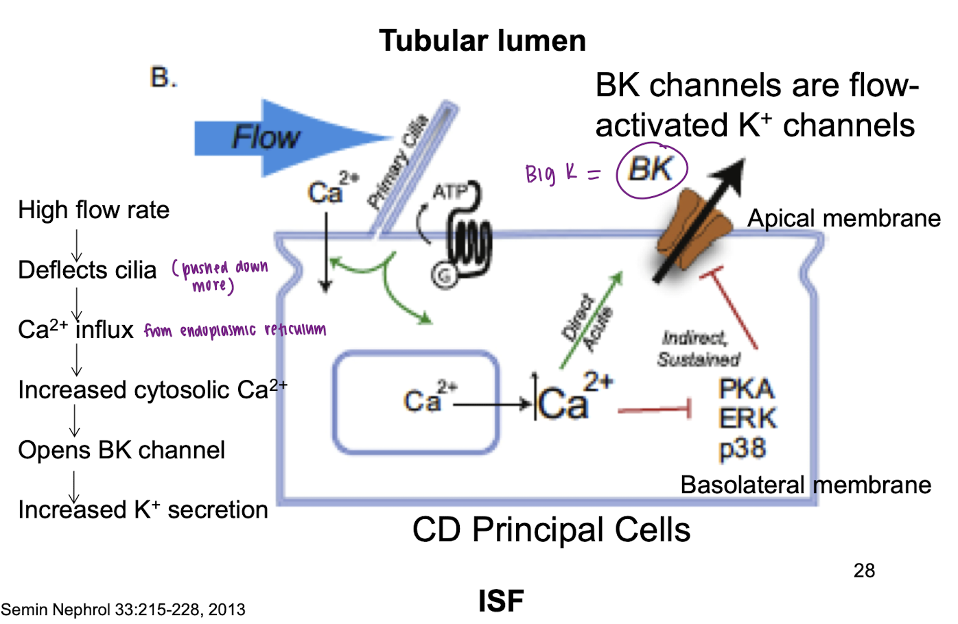 explain action mechanism of tubular flow rate on K+ secretion