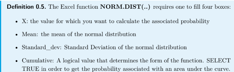 What does the excel function NORM.DIST(..)?