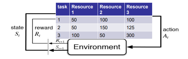 In general, a reinforcement learning agent is able to perceive and interpret its environment, take actions and learn through trial and error (e.g., resource management)