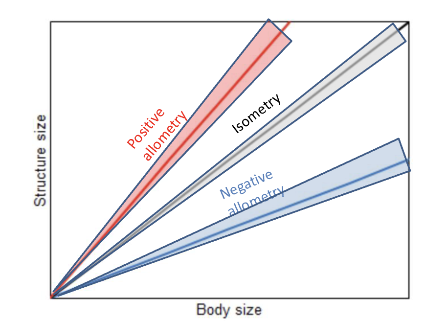 allometry= changes in size are associated w/ changes in shape (disproportional)