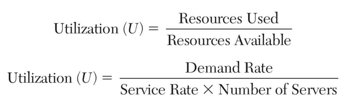 Based on the ratio of demand rate to effective service capacity based on service rate and number of servers