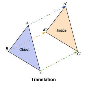 a geometric transformation consisting of a movement to the right or left, up or down, or a combination of movements