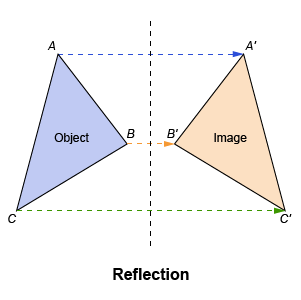 a geometric transformation over a line that that produces a mirror image of the original object or image