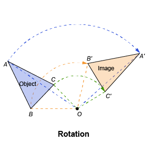 a geometric transformation consisting of a turn of a shape about a point, often the origin