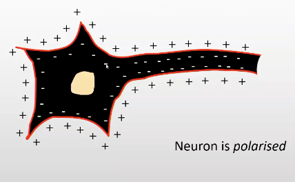 Sudden cascade of response called action potential – flips from being negatively charged to positively charged