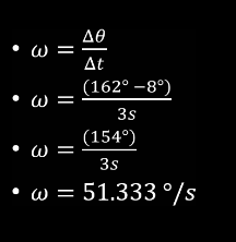 What is the angular velocity of the bicep curl if the angle between the upper arm and forearm changed for 8 degrees to 162 degrees and the movement took 3 seconds to complete?