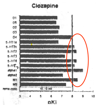 On the other hand the Clozapine (an atypical antipsychotic) was acting on the adrenergic and histaminergic receptors which is why it had a lot of the side effects.