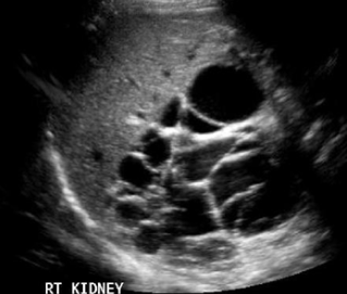 More common than ARPKD. Bilateral renal enlargement due to formation of many cysts of various sizes. The cysts gradually enlarge as the patient ages. Over time cysts will compress and destroy normal tissue.