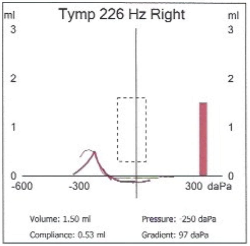 Diagnosis: Type C Tympanogram (indicates negative middle ear pressure)