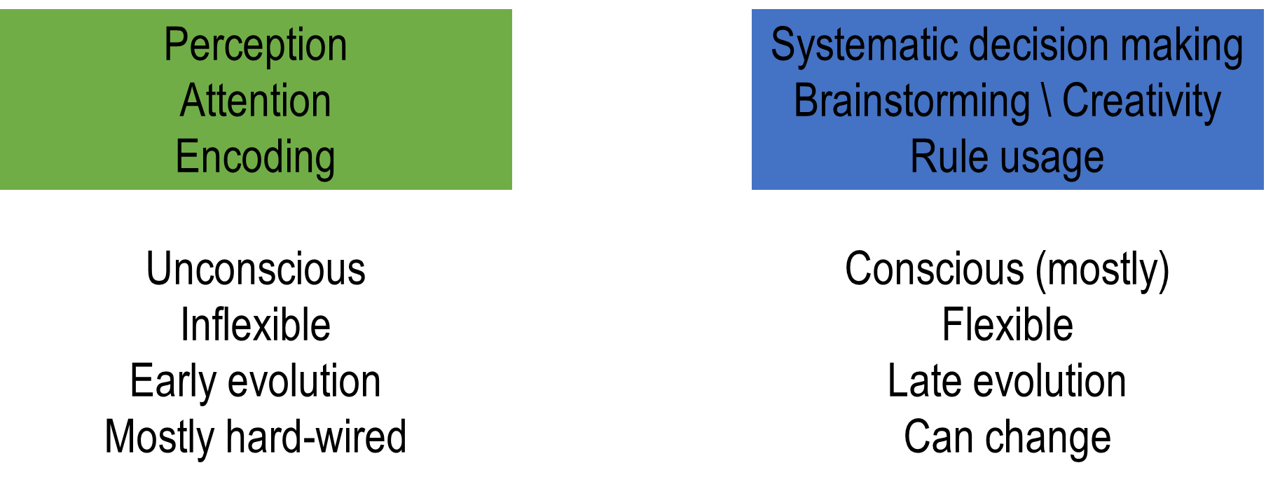 Low level vs high level cognition