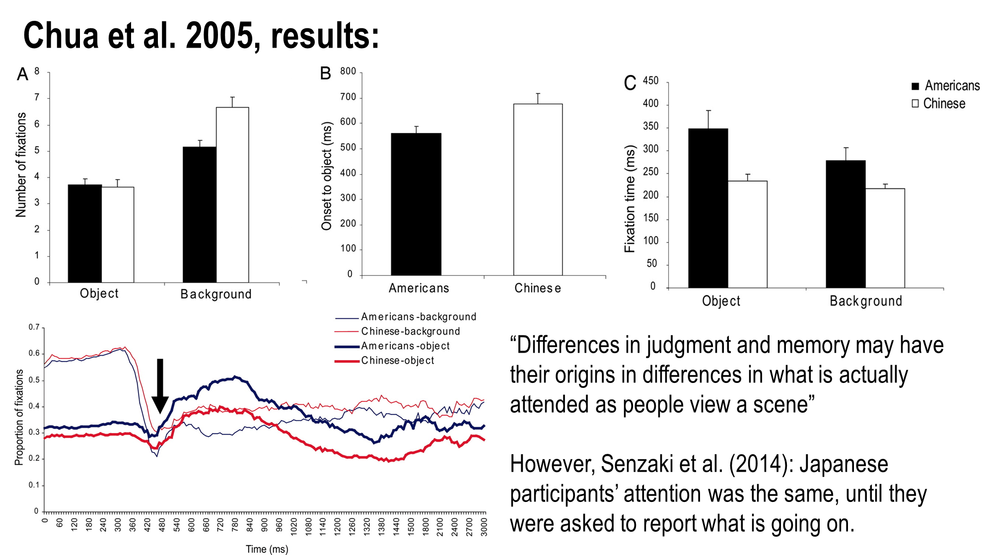 Chinese and american ppts both as likely to fixate on the object and chinese ppts more likely to fixate on the background