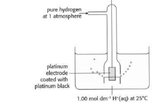 the platinum electrode is immersed in an aqueous solution of acid in which the concentration of H+ ions is exactly 1 M (1 mol*dm3)