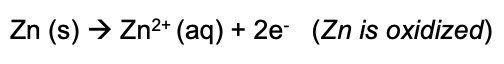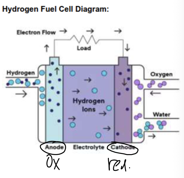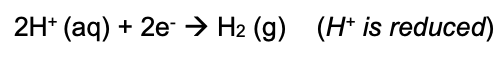 hydrogen gas is oxidized at the anode: H2 (g) → 2H+ (aq) + 2e-