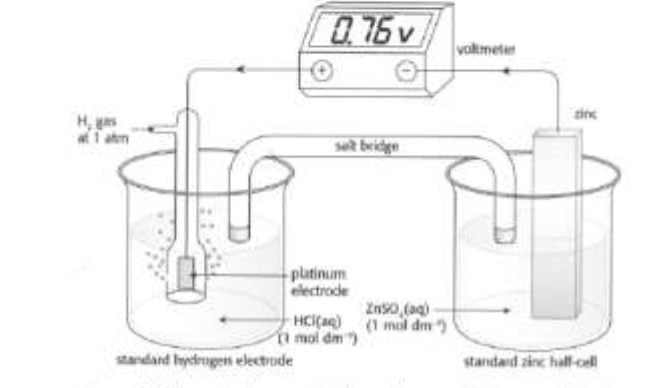 It’s determined by connecting the half-cell to the standard hydrogen electrode using a salt bridge and connecting wire under standard conditions