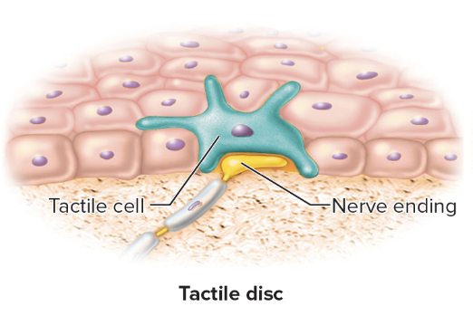 Nerve endings located in the stratum basale of the epidermis that sense light touch and pressure.